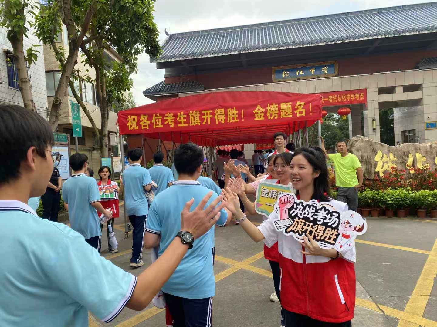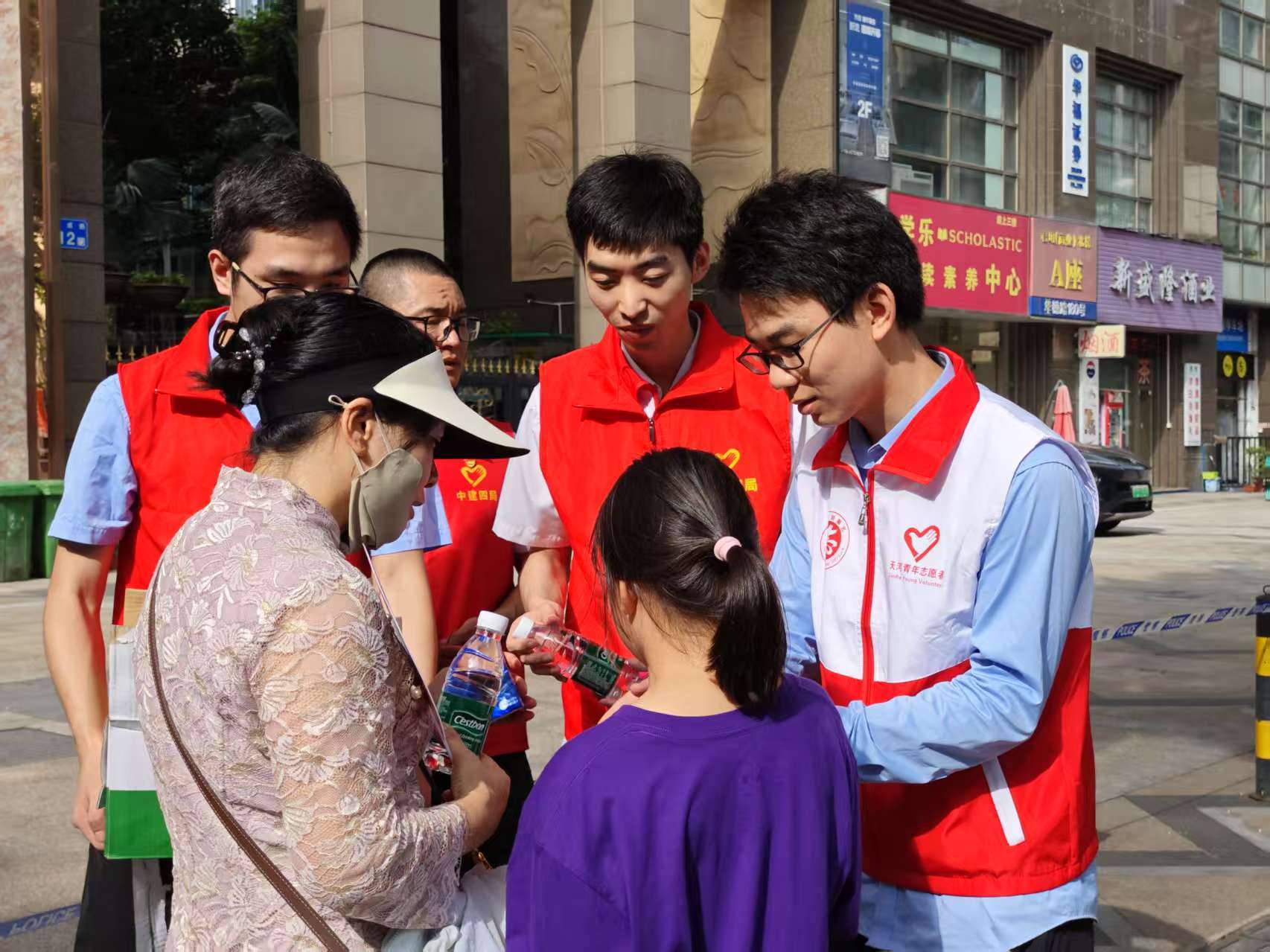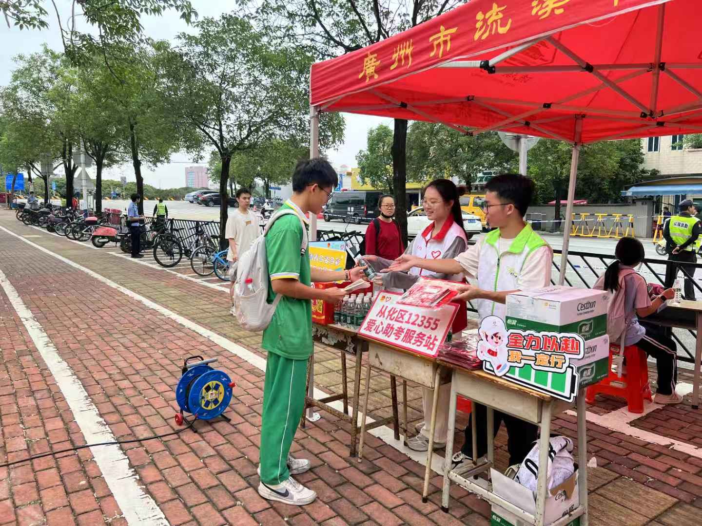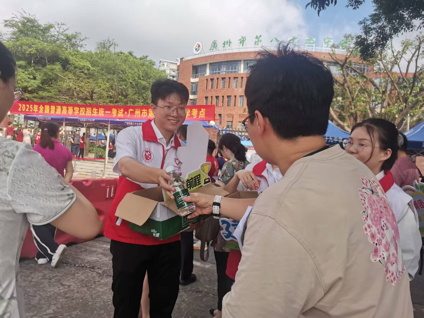 除此之外,在团市委、市志愿者行动指导中心的指导下,团越秀区委、越秀区青年志愿者协会联合越秀区暐杰志愿服务工作中心、越秀区12355青少年心理健康志愿服务队、爱尔眼科/京东大健康等爱心企业及辖内的18个志愿驿站开展助力高考志愿服务,为广大考生和家长提供心理减压、应急救援、站点助考等志愿服务,助力平安高考、健康高考、暖心高考。青年志愿者们一大早身着统一服装,面带微笑,忙碌而有序地指引考生和家长入场。此外,青年志愿者们还为考生和家长免费提供文具包、饮用水、纸巾、花露水、驱风油等应急用品,以备不时之需。时值“龙舟水”,天气复杂多变,现场还贴心地准备了雨衣,全方位提供暖心服务,营造了一个温馨而充满正能量的助考氛围。