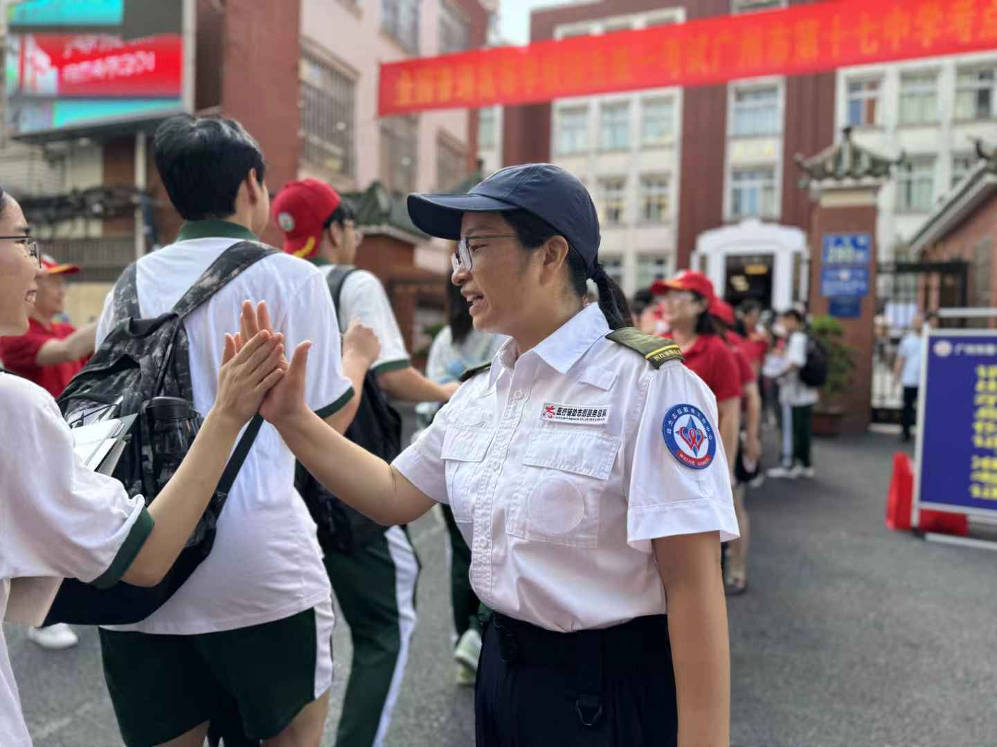 团越秀区委每日精心安排54名应急救援医疗辅助志愿者,自清晨7:30至傍晚18:00,在区内9个考场周边进行不间断巡逻,执行秩序维护、人群疏散及应急事件处理等任务,“这是我第五年投身高考志愿服务,每一次都满怀期待,愿尽己所能助学子圆梦!”越秀区暐杰志愿服务工作中心负责人徐暐杰朴实的话语,代表了应急守护志愿者的坚定信念。除专业队伍保驾护航以外,团番禺区委还在广东仲元中学考点外设立文明交通志愿服务点,为考生、家长及工作人员提供雨具、防暑降温用品等便民应急物资,让考生能在安全有序的环境中安心应考。广州市从化区青年志愿者协会联动临近考点的志愿驿站,全面开展助考服务、文明交通引导及应急救援工作,为高考学子加油鼓劲,细致做好考场周边交通指引,为有需要的考生和家长提供贴心帮助。