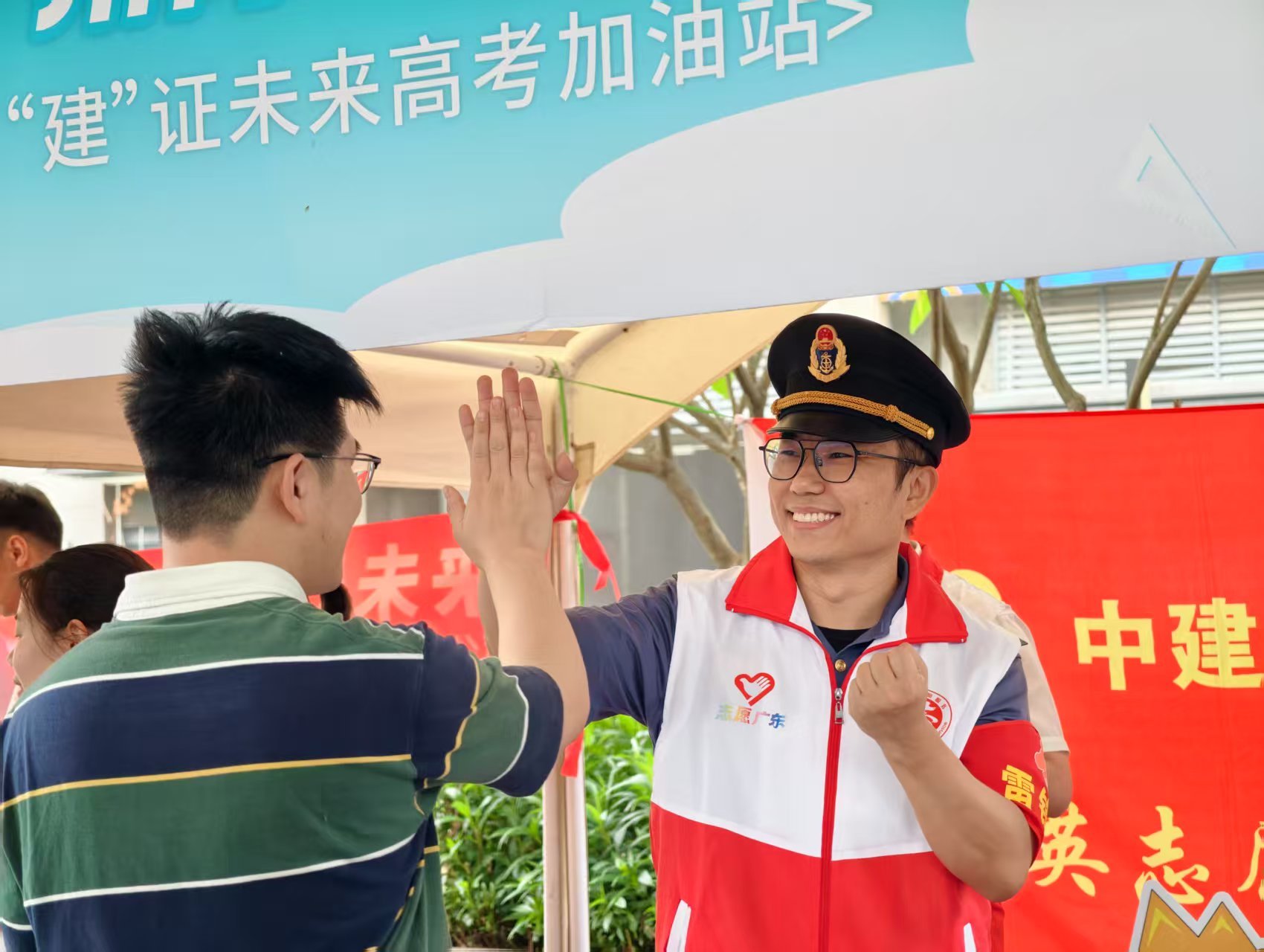 “高考加油站”遍地开花,应急物资全覆盖。高考期间,中建集团及旗下多家子企业积极投身志愿服务,以实际行动诠释国企社会责任,在全市多个考点设立“建证未来—高考加油站”。站点内,爱心文具、饮用水、防暑药品等物资一应俱全,醒目的加油标语传递无声的鼓励。“作为一名驻穗央企青年,能护航高考学子人生重要时刻,意义非凡!”参与本次高考志愿服务的中建青年志愿者小林道出了众多志愿者的心声,“今后我们也将继续通过志愿服务投身广州的高质量发展之中,在奉献中展现青春作为。”